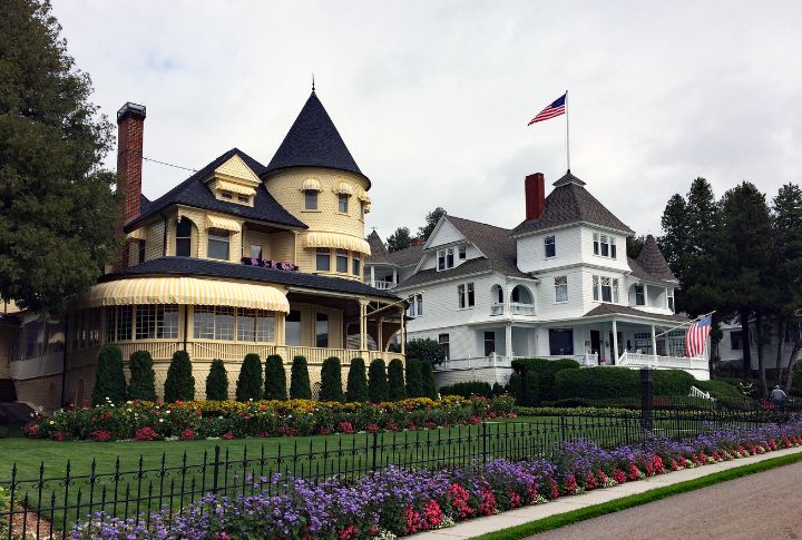 The rich architecture in Mackinac Island complements the scenery. Buildings have a fine mix of styles, such as Gothic Revival, Carpenter Gothic, and Queen Anne. There are iconic buildings like the Grand Hotel and the Island House Hotel. While visiting, you can tour various architectural sites while enjoying the car-free atmosphere. Yes, car-free!