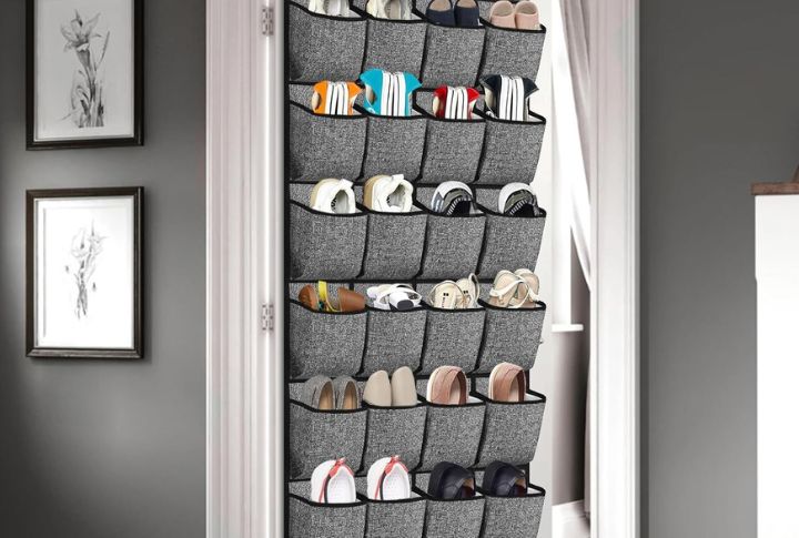 Cleaning supplies often end up stuffed in cabinets, but a hanging shoe organizer can change the game. Slip brushes, spray bottles, and gloves into its compartments and hang them on a door. Each item gets its own spot, which makes it easy to grab what you need.