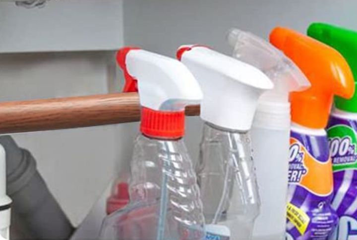 Tension rods are unsung heroes of home organization. Install one under your sink to hang spray bottles, freeing up the space below for sponges, clothes, and more. This is especially handy in small kitchens or cramped apartments where every inch counts.