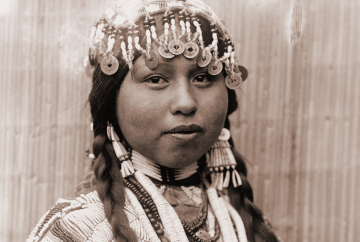 This mysterious portrait of an unidentified Lakota teen enchants with its subtle charm. The girl’s soft smile, paired with traditional regalia, talks about the rich legacy of her ancestry. The image invites us to appreciate the youth’s quiet strength and delicate beauty.