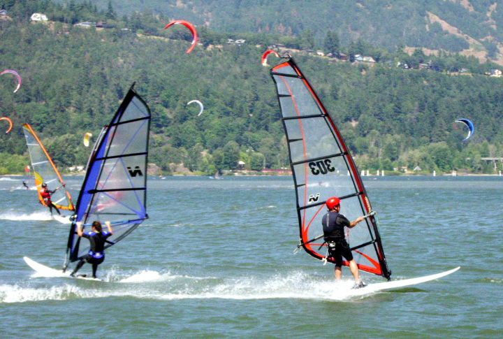 This Hood River is distinguished for its powerful currents and stunning mountain scenery. The wind funneled through the gorge creates ideal kiteboarding conditions, attracting adrenaline seekers nationwide. Featuring forested cliffs and snow-capped mountains, it adds to the exhilarating experience.