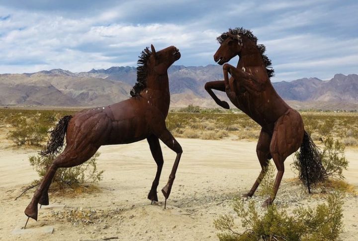 The desert outside San Diego doubles as a massive art gallery, with huge metal creatures scattered across the sand. A local millionaire filled this spot with pre-historic-themed dinosaurs, mammoths, and wild horses. Drive around at sunset when shadows make the sculptures look alive.